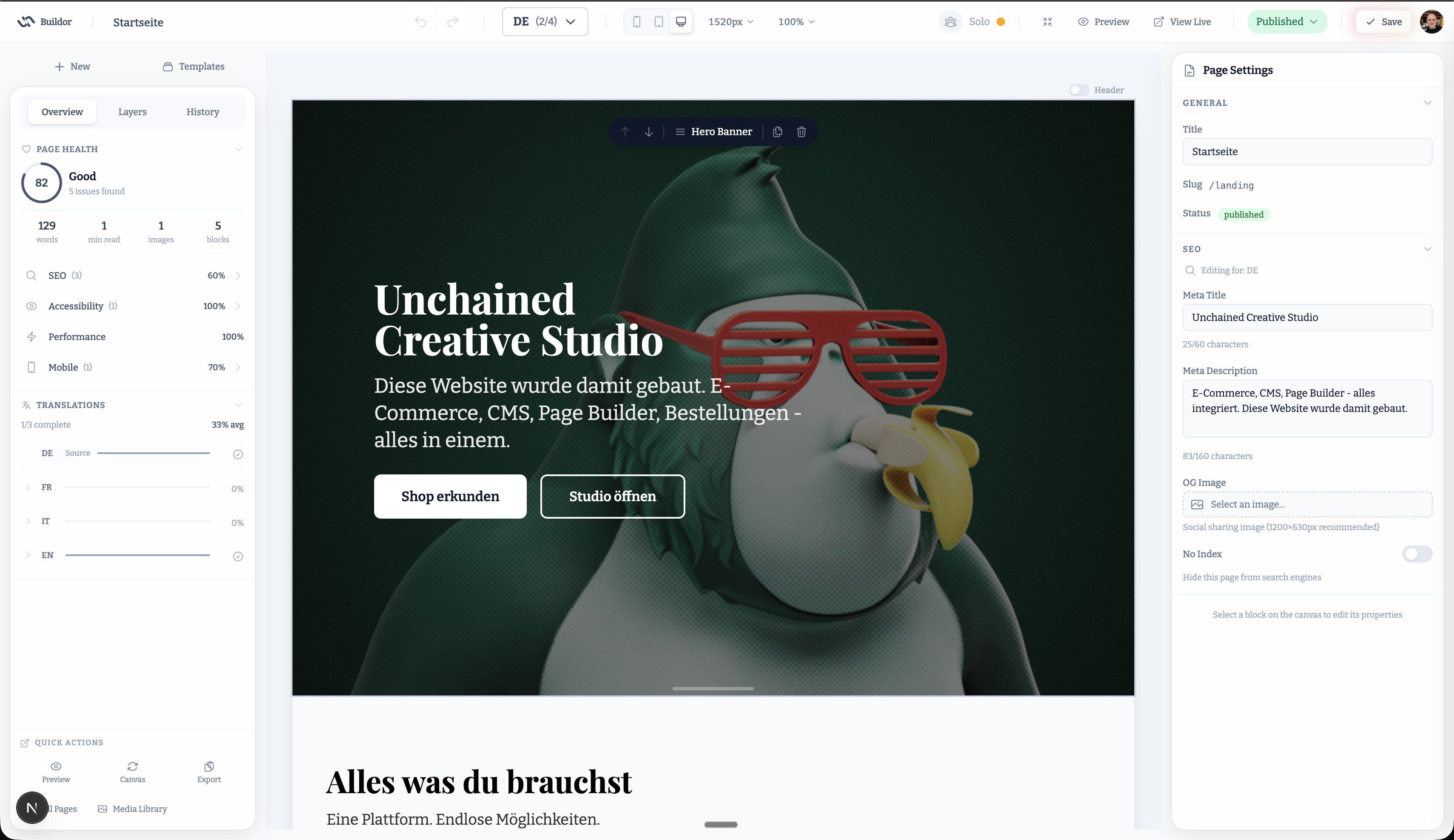 Where ideas become storefronts. Drag & drop page builder, e-commerce engine, and an interface that's actually fun to use.
