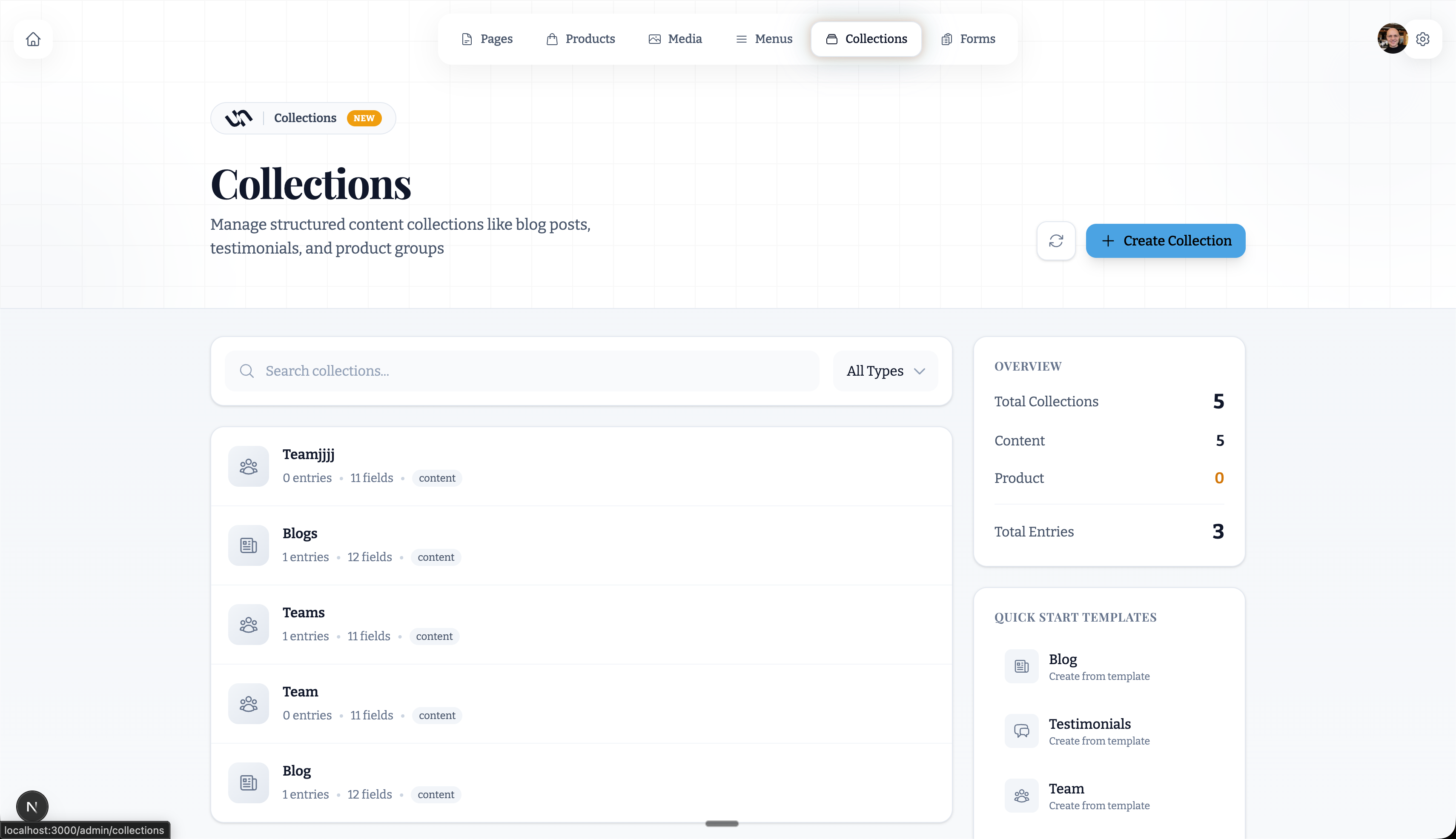 Custom content types. Team pages, blog posts, testimonials - define your structures.